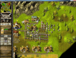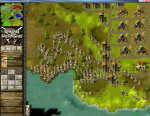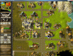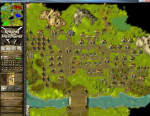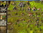 | Пистайм составлял час. За это время у нас накопилось много оружия, а у противника, как казалось, все шло не очень хорошо. Особенно у Доминика - казарма пустовала (об этом позже). Примерно через 1.5 часа Кирилл решил штурмовать Доми. Направил на него овер 70 конячке и пикинеров. Но у доми был готов ответ... Толпа арбалетчиков и пикинеров... в итоге все конячки полегли Чуть позже мы решили вновь штурмовать Доми, на этот раз более удачно, перебили армию, разрушили пару складов и казарму. Но опять пришло подкрепление... снова толпа пикинеров и арбов... откуда? Как оказалось, из запасной казармы (Доми маньяк, запрятал ее за башенки, фиг доберешься, да еще весь город башенками утыкан). Подождали мы и решили штурмовать в третий раз... На этот раз ответ был слабенький, около 30 пик, пара арбов и толпа ополченцев... Войск Кирилла не хватило, я пригнал подкрепление - 50 конячке и арбов Увидев армии, Доми сбежал....